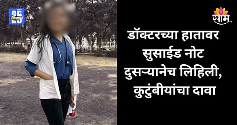 सातारा महिला डॉक्टर आत्महत्या प्रकरणात नवा ट्विस्ट आला आहे. महिला डॉक्टरने आत्महत्या करण्यापूर्वी हातावर लिहिलेली सुसाईड नोटबाबत तिच्या कुटुंबीयांनी मोठा खुलासा केला आहे. डॉक्टरच्या हातावरील सुसाईड नोट ही कुणी तरी लिहून ठेवली आहे आणि त्याच्यामध्ये खाडाखोड केली आहे. तिची ही रायटिंग नसून प्रकरणाच्या पाठीमागे आणखी कोणीतरी आहे याची कसून चौकशी झाली पाहिजे, अशी मागणी डॉक्टरच्या बहिणीने केली आहे.