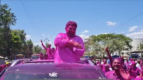 सातारा कृषी उत्पन्न बाजार समितीच्या निवडणुकीत निघालेल्या मिरवणुकीमध्ये आमदार शिवेंद्रराजे भोसले यांनी दंड थोपटून आणि वेगवेगळ्या पोझ देऊन विरोधकांना म्हणजेच खासदार उदयनराजेंना एक प्रकारे इशारा दिला आहे. यावेळेस मोठ्या प्रमाणात कार्यकर्ते तालुक्यातून आल्याचे पाहायला मिळत होते.