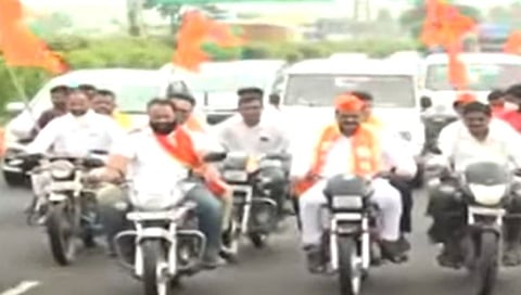 शिवसेनेचे काेल्हापूरचे जिल्हा प्रमुख म्हणाले विजय देवणे म्हणाले काेविडच्या पार्श्वभुमीवर गडहिंगलज, कागल, आजरा, चंदगड या चार तालुक्यांत जाता नागरिकांना आरटीपीसीआर चाचणी बंधनकारक केली आहे. महाराष्ट्रातून महाराष्ट्रात जाण्याचा आमचा अधिकार आहे. ताे अधिकार त्यांना घेता येणार नाही. आम्ही भगव्या रॅलीच्या माध्यमातून कर्नाटक सरकारला जागे करुन महाराष्ट्रातील जनतेवरील अन्याय दूरा अशी मागणी करीत आहाेत.