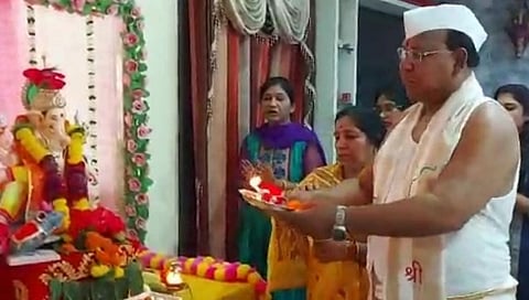 वर्धा - जिल्ह्यात सर्वत्र गणेशाची Gapnati स्थापना होत आहे. वर्धेचे Wardha भाजपचे BJP खासदार रामदास तडस Ramdas Tadas यांनी विधिवत पूजा करून भक्तिमय वातावरणात सर्व परिवारासोबत सपत्नीक श्री गणेशाची स्थापना केली. यावेळी त्यांनी सर्वांना गणेश चतुर्थीच्या शुभेच्छा देत श्री गणेशाला प्रार्थना केली. यावर्षी धान्य कपाशी सोयाबीन सर्व पीक चांगले व्हावे आणि शेतकऱ्यांचे दिवस चांगले यावे.