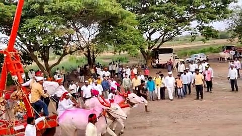 सांगली : सांगली जिल्ह्यातील नागेवाडी येथील ग्रामदैवत श्री नागनाथ देवाच्या यात्रेतील (shri nagnath yatra) खास वैशिष्ट्य असलेली लाकडी बगाड (bagad) पळविण्याचा कार्यक्रम रविवारी उत्साहात संपन्न झाला. कोरोनाचा प्रादुर्भाव वाढू नये यासाठी लावण्यात आलेले निर्बंध उठवल्यानंतर बगाड पाहण्यासाठी भाविकांनी मोठी गर्दी केली होती. (bagad latest marathi news)