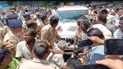 पोलिसांनी महापालिका कामगारांना शिवीगाळ केल्याचा आरोप शिंदे समर्थकांनी केली. तर दमबाजी करु नका कायद्याचे पालन करा असं पाेलिस वारंवार शिंदे समर्थकांना आवाहन करीत हाेते. त्यातच काही ज्येष्ठ आंदाेलकांना पाेलिसांनी ताब्यात घेतल्यानं कार्यकर्त्यांनी पोलीसांच्या गाडी अडवली.