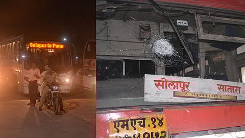 सोलापुरातील डी मार्ट आणि सम्राट चौक परिसरात एसटी बसवर दगडफेक करण्यात आली. सोलापूरहून तुळापूरला जाणाऱ्या दोन गाड्या आणि सोलापूरहून साताऱ्याला जाणाऱ्या एक गाडीवर दगडफेक झाली. दगडफेकीनंतर पोलीस तात्काळ घटनास्थळी पोहोचले. ही दगडफेक नेमकी कुणी केली, याचा तपास पोलीस करत आहेत. या प्रकरणी अज्ञातावर गुन्हा दाखल करण्याची प्रक्रिया सुरु आहेत. यामध्ये कोणत्याही प्रवाशाला त्रास झालेला नाही. सर्व परिस्थिती पूर्ववत झाली असून वाहतूक सुरळीत सुरु झाली आहे.