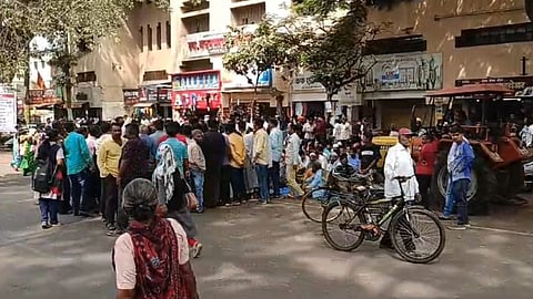 त्यामुळे आज (शनिवार) महापालिके समोरील मदन भाऊ संकुल या ठिकाणी बसणारा बाजार दिवाळी काळापुरता स्थलांतरित करण्याचे आदेश महापालिका प्रशासन काढले होते. याला विरोध करत आज येथील व्यवसायिकांनी घोषणाबाजी केली.
