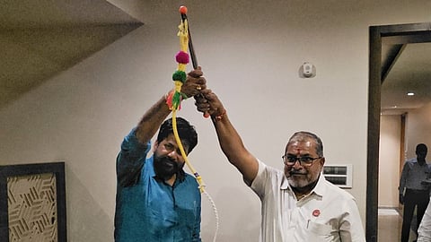 प्रहार संघटनेचे अध्यक्ष आमदार बच्चू कडू (bachchu kadu) यांनी स्वाभिमानी शेतकरी संघटनेचे अध्यक्ष राजू शेट्टी (raju shetti) यांची सांगली येथे भेट घेऊन आजपासून राजू शेट्टी यांच्या सुरू होणा-या आक्रोश मोर्चाच्या ५२२ किलोमीटर पदयात्रेस पाठिंबा व्यक्त केला. यावेळी शेतक-यांच्या (farmers) प्रश्नावर आवाज तीव्र करण्यासाठी कडू यांनी शेट्टींना असूड भेट दिला.