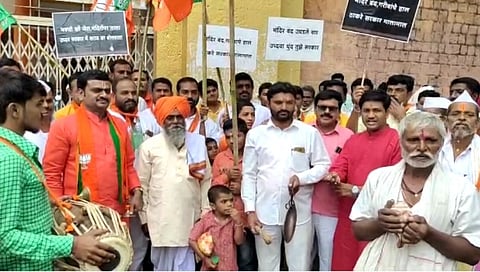 राज्य सरकार इकडे बियर बार हॉटेल चालू करण्यास परवानगी देत असताना मंदिर बंद का?असा प्रश्न उपस्थित करत उद्धवा अजब तुझे सरकारच्या घोषणा देत.. मंदिराचे कुलूप उघडून दर्शनासाठी खुले करण्यात आले. सरकार चे निर्बंध आता पाळणार नाही असा निर्धार भारतीय जनता पार्टीचे बीड जिल्हा अध्यक्ष राजेंद्र मस्के Rajendra Mhaske यांनी बोलून दाखवला. तसेच सरकार आमच्या श्रद्धेच्या आड येऊ शकत नाही. पवित्र श्रावण महिन्यात मंदिर बंद होते, आता उघडलेले मंदिर बंद करू देणार नाही. असा इशारा देखील त्यांनी दिला.