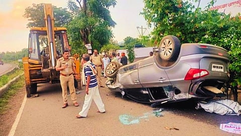 काेंढाळी : राेडवर असलेला खड्डा चुकविण्याच्या नादामध्ये अनियंत्रित कार दुभाजकारवर जोरात धडकली आणि सर्व्हिस राेडवर बसची प्रतीक्षा करत उभ्या असलेल्या ५ जणांना उडवत उलटली आहे. यामध्ये गंभीर जखमी झालेल्या ५ जणांपैकी ४ मृत्यू झाला आहे. मृतांमध्ये सख्ख्या भाऊ- बहिणीचा समावेश आहे. ही घटना काेंढाळी ता. काटाेल या पाेलीस ठाण्याच्या हद्दीत घडली आहे. नागपूर- अमरावती राष्ट्रीय महामार्गावर सातनवरी या ठिकाणी रविवारी दुपारी २.१५ वाजेच्या सुमारास घडली आहे.