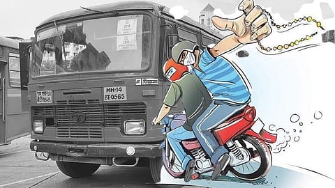 बीड : उस्मानाबाद मार्गे बीडकडे Beed दुचाकीवरुन येणाऱ्या दांम्पत्याला, तिघा जणांनी दुचाकी आडवी लावून लुटल्याचा धक्कादायक प्रकार बीडच्या चौसाळा परिसरात घडलाय. ही घटना रविवारी सायंकाळच्या दरम्यान घडली. यामध्ये चोरट्यांनी विवाहित महिलेच्या गळ्यातील सोन्याच्या दागिन्यांसह पैसे घेऊन पोबारा केला आहे.