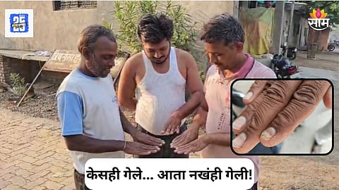 बुलढाणा जिल्ह्यातील शेगाव तालुक्यातील जवळपास १५ गावांमधील नागरिकांमध्ये भीतीचे वातावरण कायम आहे. या गावांमधील नागरिकांची केस गळती होऊन टक्कल पडल्याचा प्रकार ३ महिन्यांपासून सुरू आहे. आधी केस गळती आणि आता बोटांची नखं चालल्याचा धक्कादायक प्रकार समोर आला आहे. त्यामुळे पुन्हा या सर्व गावांमध्ये खळबळ उडाली आहे. आधी टक्कल व्हायरसने नागरिकांची चिंता वाढवली होती पण आता बोटांची नखं जायला लागल्यामुळे नागरिक संकटामध्ये आले आहेत. नेमकं चाललंय तरी काय असा प्रश्न या गावकऱ्यांना पडला आहे.