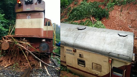 गोवा : गोव्याजवळ Goa कर्नाटक Karnatak हद्दीत सोनावळी येथे दक्षिण मध्य रेल्वेच्या मार्गावर दरड कोसळल्याने आज सकाळी मुंबईला जाणाऱ्या मंगळुरू - मुंबई स्पेशल ट्रेनचे इंजिन आणि एक डबा रुळावरून घसरल्याने आधीच पावसामुळे विस्कळीत झालेले रेल्वेचे वेळापत्रक काही काळासाठी ठप्प झाले. या घटनेनंतर कोंकण रेल्वे मार्गावरील 5 तर दक्षिण मध्य रेल्वे मार्गावरील 1 अशा 6 गाड्या रद्द करण्यात आल्या.