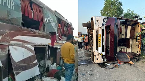 मिळालेल्या माहितीनुसार, नागपूर-हैदराबाद महामार्गावर खड्डा चुकवताना ट्रॅव्हल्स बस उलटली आहे. हैदराबादहून रायपूरला निघालेल्या बसला गुरुवारी पहाटे ५ वाजेच्या सुमारास अपघात झाला. ट्रॅव्हल्समधून 28 प्रवासी प्रवास करत होते. प्रवाशी साखरझोपेत असतानाचा हा अपघात झाला. यात एका प्रवाशाचा मृत्यू झाला तर 8 जण जखमी झाले आहेत. (Accident News)