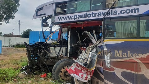 ही बस दुभाजकास धडकून टायर फुटला. ही बस लेन सोडून विरुद्ध बाजूला उभ्या असलेल्या मोठ्या ट्रॉलीवर आदळली. या भीषण अपघाताचा (accident) सीसीटीव्हीत कैद झालेला व्हिडिओ समोर आला आहे. दरम्यान गेले दाेन दिवस या अपघाताचा तपास महामार्ग पाेलिस करीत आहेत. (Breaking Marathi News)