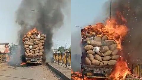 Nagpur Truck Fire : नागपूरच्या भंडारा रोडवर मसाल्याच्या ट्रकला भीषण आग लागल्याची घटना घडली आहे. कापसी परिसरात सुरुची मसाल्याच्या ट्रकला ही आग लागली. या ट्रकमध्ये मसाल्याचे पोते असल्याने काही क्षणातच आगीचा भडका उडाला.