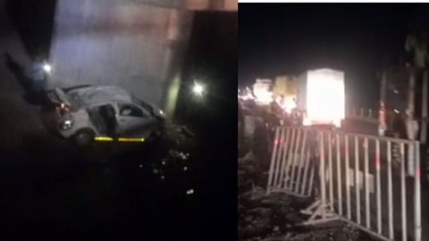Latur Accident News : दुचाकीला वाचविण्याच्या नादात दोन दुचाकी, दोन कारचा विचित्र अपघात झाल्याची घटना लातूर- औसा महामार्गावरील पेठ येथील पुलावर मंगळवारी रात्री ८ वाजेच्या सुमारास घडली. या विचित्र अपघातात तीन गंभीर, तर एक किरकोळ जखमी झाला आहे. यातील एक दुचाकी आणि एक कार पुलावरून नदीपात्रात कोसळली आहे. याबाबत लातूर ग्रामीण पोलिस ठाण्यात रात्री उशिरापर्यंत गुन्हा दाखल करण्याची प्रक्रिया सुरू होती. (Latest Marathi News)