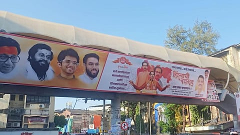 मुंबईपासून विविध शहरांच्या गल्ल्यांमध्ये दोन्ही गटाचे बॅनर झळकत आहेत. अशातच डोंबिवलीतही ठाकरे यांच्या शिवसेनेच्या बॅनरने सर्वांच्या भुवया उंचावल्या आहेत. कारण, बुधवारी होणाऱ्या दसरा मेळाव्यात (Dasara Melava) उद्धव ठाकरे यांच्या बॅनरवर दसरा मेळावा, चलो शिवतीर्थ अशाप्रकारे शिवसैनिकांना आवाहन करण्यात आलं आहे. विशेष म्हणजे ठाकरे यांच्या बॅनरवर दिवंगत शिवसेना प्रमुख बाळासाहेब ठाकरे, दिवंगत आनंद दिघे, युवासेना प्रमुख आदित्य ठाकेर यांच्यासोबत तेजस ठाकरे यांचाही फोटो लावण्यात आला आहे. त्यामुळे दसरा मेळाव्यात तेजस ठाकरेंची तोफ धडाडणार का? हे पाहणं औत्सुक्याचं ठरणार आहे.