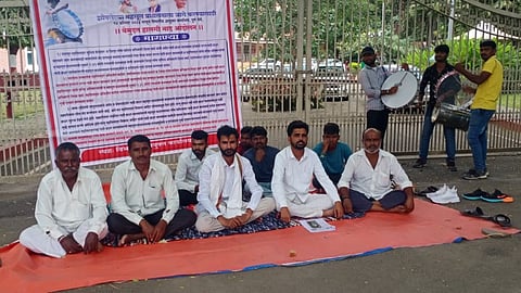 सोलापूर जिल्ह्यातील सांगोला, पंढरपूर, मंगळवेढा, माळशिरस, माढा, करमाळासह इतर तालुक्यात सुरू असलेल्या विना परवाना बेकायदेशीर खडी क्रशरवर कायदेशीर कारवाई करण्याच्या मागणीसाठी सामाजिक कार्यकर्ते दादासाहेब चव्हाण यांनी नागरिकांसह पुणे विभागीय आयुक्त महसूल यांच्या कार्यालय समोर हलगी नाद आंदोलन सुरू केले आहे.