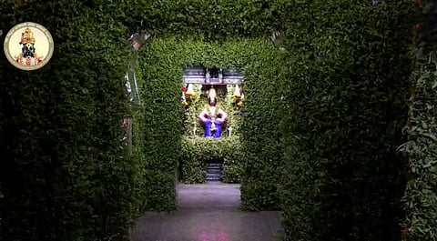 पंढरपूर: गेल्या दीड वर्षांपासून बंद असलेले विठ्ठल-रुक्मिणी मंदिर (Vittal Rukhmini Temple) आज सकाळी सहा वाजता उघडण्यात आले आहे. घटस्थापनेच्या निमित्ताने विठ्ठल रुक्मिणी मंदिराला तुळशीच्या पाना फुलांची आरास करण्यात आली आहे. ही आरास पुणे येथील भाविक राम जांभुळकर यांच्यावतीने केले केली आहे. विठ्ठल-रुक्मिणीच्या मंदिरात तुळशीच्या पाना फुलांची आरास केल्याने मंदिर हिरव्यागर्द पानाफुलांनी फुलून गेले आहे. यासाठी सुमारे दोन टन तुळशीच्या पाना फुलांचा वापर करण्यात आली आहे. याशिवाय मंदिरामध्ये आणि मंदिराच्या बाहेर आकर्षक रांगोळ्या काढण्यात आले आहे. आज पहाटेपासूनच मंदिर व मंदिर परिसरात भाविकांची लगबग सुरू झाली आहे.