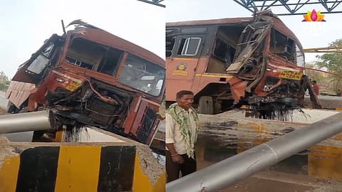 वर्धा : वरुडवरून आर्वी येथे प्रवासी घेऊन जाणाऱ्या वरुड आगाराच्या बसला द्रुगवाडा गावाजवळ भीषण अपघात झालेला आहे. या गावाजवळ असलेल्या टोल नाक्यावरील डिव्हायडरवर भरधाव बस आदळली. यामध्ये बसच्या समोरील भागाचं नुकसान झालं असून प्रवास करणारे सात प्रवासी जखमी झाले आहेत.