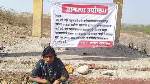 बीड: भूसंपादनाच्या मोबदल्यासाठी अनेक वेळा आंदोलनं, ऊपोषण आणि तक्रार देऊनही, न्याय न मिळाल्याने, बीडच्या (Beed) पाली येथील अर्जुन साळुंके यांनी नोव्हेंबर 2020 ला बीडच्या पाटबंधारे कार्यालयाच्या दारातचं, स्वतःला जाळून घेत आपलं जीवन संपवलं होतं. या घटनेला जवळपास आता एक वर्ष 3 महिने होत आले तरी, अद्यापही हा प्रश्न मार्गी लागला नाही. यामुळं संतप्त झालेल्या अर्जुन साळुंके यांच्या पत्नीनं, बीडच्या पाली गावातील स्मशानभूमीत बेमुदत उपोषण सुरू केलं आहे. (Latest Beed News In Marathi)