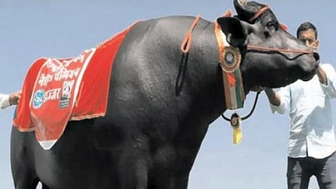 या रेड्याला पाहूनच भल्या भल्यांना घाम फुटेल. या रेड्याची उंची सहा फूट तर लांबी सात फूट आहे. असा डौलदार रेडा आणि त्याच्या अंगावर वाघाची डिजाईन केली आहे. हा रेडा ज्यावेळेस बीडच्या (beed) माळीवेस, धोंडीपुरा भागात वाजत गाजत आला त्यावेळेस नागरिक त्याकडे पाहतच राहिले.
