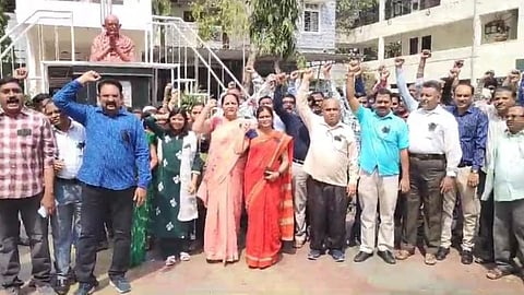 धुळे जिल्हा परिषदेच्या कार्यकारी अधिकाऱ्यांच्या दालनाला गेल्या काही दिवसांपूर्वी कुलूप लावून नियमबाह्य पद्धतीने आंदोलन झाल्याच्या घटने विरोधामध्ये आज धुळे जिल्हा परिषदेच्या सर्व कर्मचारी व अधिकाऱ्यांनी या आंदोलनकर्त्यांच्या आंदोलनाच्या चुकीच्या पद्धतीचा विरोध केला. सर्वांनी काळ्या फिती लावून सणदशीर मार्गाने आंदाेलकांचा निषेध नाेंदविला. ('साम टीव्ही'चं व्हॉट्सअॅप चॅनल जॉईन करण्यासाठी येथे क्लिक करा)