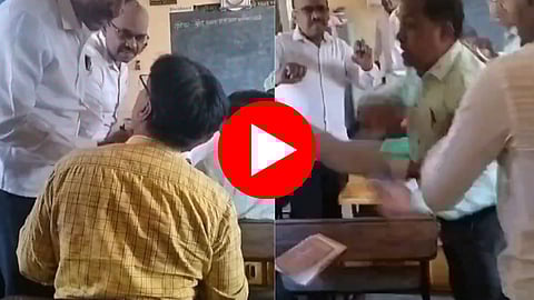 शाळेत शिकवणाऱ्या दोन शिक्षकांनी वर्गातच एकमेकांची कॉलर पकडलीये. दोघांनी एकमेकांना चापटी आणि जोरजोरात बुक्क्या मारल्या आहेत. शिक्षकांची ही हाणामारी सुरू असताना वर्गातील अन्य शिक्षकांनी त्यांचा व्हिडिओ आपल्या कॅमेऱ्यात कैद केला आहे. सध्या हा व्हिडिओ सोशल मीडियावर तुफान व्हायरल होत आहे.