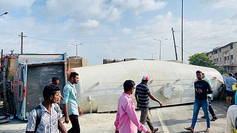 दरम्यान पाेलीसांनी या भागातील वाहतूक ऐकेरी मार्गाने सुरू केली आहे. घटनास्थळी महामार्ग पोलिस टॅंकर बाजूला करण्याचे प्रयत्न करत आहेत. या टॅंकरमधील चालक व वाहक किरकोळ जखमी झाले आहेत. त्यांच्यावर उपचार करण्यात आले आहेत. या अपघाताची चाैकशी महामार्ग पाेलीस करीत आहेत.