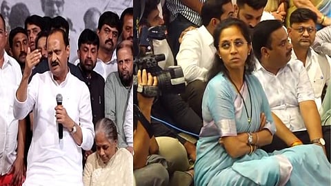 Sharad pawar News: राष्ट्रवादी काँग्रेसचे अध्यक्ष शरद पवार यांनी राष्ट्रवादी काँग्रेस पक्षाच्या अध्यक्षपदावरुन निवृत्त होण्याचा निर्णय जाहीर केला आहे. लोक माझे सांगाती या आपल्या आत्मचरित्राच्या प्रकाशन सोहळ्यात शरद पवार यांनी या निर्णयाची घोषणा केल्यानंतर सभागृहात एकच गोंधळ निर्माण झाला. त्यानंतर खासदार सुप्रिया सुळे बोलत असताना अजित पवार यांनी 'सुप्रिया तू बोलू नकोस, असा सल्ला दिला. (Latest Marathi News)