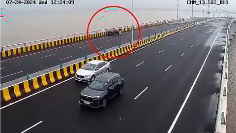 मुंबईमधील अटल सेतूवर एका व्यक्तीने आत्महत्या केल्याची घटना घडलीय. सेतूवरुन उडी मारुन या व्यक्तीने आत्महत्या केलीय. या घटनेचे दृश्य पुलावरील सीसीटीव्हीमध्ये कैद झाले आहेत. दरम्यान करणाऱ्या व्यक्तीचं वय ३८ वर्ष असल्याचं सांगितलं जात आहे.