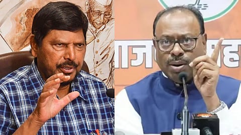 पुणे : नागपुरातील राजभवनात महायुतीच्या ३९ मंत्र्यांनी शपथ घेतली. महायुतीच्या प्रमुख तीन पक्षांच्या नेत्यांनी यावेळी मंत्रिपदाची शपथ घेतली. यावेळी देवेंद्र फडणवीस यांच्या मंत्रिमंडळात नव्या चेहऱ्यांना संधी मिळाल्याचे दिसून आलं. दुसरीकडे शिंदे सरकारमधील १० हून अधिक जणांचा पत्ता झाल्याचे दिसून आले. महायुतीच्या नव्या मंत्रिमंडळात आरपीआय पक्षाला स्थान मिळावे, अशी मागणी केंद्रीय राज्यमंत्री रामदास आठवले यांनी केली होती. मात्र, त्यांच्या पक्षाला मंत्रिपदासहित शपथविधीचं आमंत्रणही मिळालं नव्हतं. त्यानंतर केंद्रीय राज्यमंत्री रामदास आठवलेंनी नाराजी व्यक्त केली होती. त्यानंतर आता भाजप प्रदेशाध्यक्ष चंद्रशेखर बावनकुळे यांनी आठवले यांची माफी मागितली.