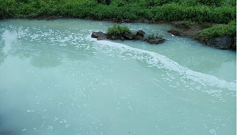 डोंबिवली : प्रदूषित शहर म्हणून डोंबिवली शहराची ओळख असून आता हे प्रदूषणाचे लोण कल्याण ग्रामीण विधानसभा क्षेत्रामधील 14 गावातही पसरल्याचे दिसून येत आहे. 14 गावात असलेल्या गोसिया मार्केटमधून आणि मुंब्रा पनवेल मार्गावरील भंगार गोदामातून केमिकल मिश्रित पाणी थेट रस्तावर सोडले गेले होते. यामुळे गावातील रस्ते निळेशार झाले होते. या घटनेनंतर तीन दिवसांतच 14 गावातील नदीमध्ये केमिकल सोडल्याचे दिसून आले. या केमिकलमुळे नदीमधील पाणी हिरवेगार झाले असून पाण्यात फेस निर्माण झाला आहे. हेच पाणी शेतकऱ्यांच्या शेतातसुद्धा घुसले आहे. त्यामुळे शेतीचे नुकसान झाले आहे. (Chemicals have turned the river water green, causing damage to agriculture)