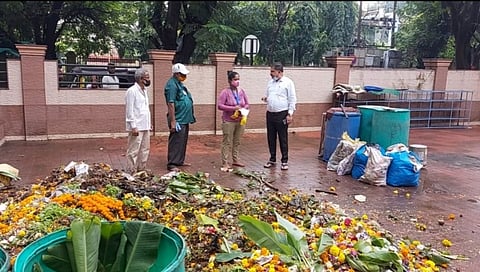 डोंबिवली : डोंबिवली Dombivli मधील प्रसिद्ध आणि जुने श्री गणेश मंदिर Shri Ganesh Temple संस्थानच्या वतीने एमआयडीसी MIDC मध्ये निर्माल्य खत प्रकल्प राबविला जातो आहे. त्याकरिता गणेश मंदिर आवारात निर्माल्य गोळा केले जाते. या खत प्रकल्पात दररोज सुमारे ८०० किलोच्या आसपास निर्माल्यावर प्रक्रिया केली जाते. वर्षभराच्या कालावधीत सुमारे ६० टन निर्माल्य खत या प्रकल्पात तयार केले जाते.