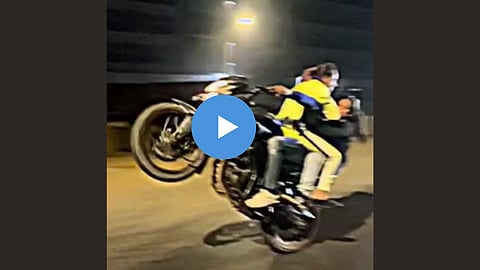मात्र त्यांची स्टंटबाजी इथेच थांबली नाही, तर मुलाने त्यानंतर वेगात असलेल्या बाईकचं पुढचं चाक वर करत व्हीली मारली. व्हिडीओ बघताना या स्टंटबाजीचा थरार तुम्हाला अनुभवता येईल. कारण या स्टंटबाजी दरम्यान एखादी चूक झाली असती तर होत्याचं नव्हतं झालं असतं.