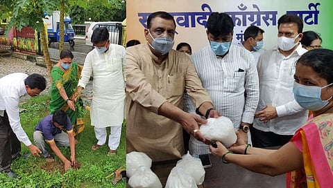 नवी मुंबई - राज्याचे उपमुख्यमंत्री अजित पवार यांच्या वाढदिवसानिमित्त राष्ट्रवादी काँग्रेस पार्टीचे महाराष्ट्र प्रदेश उपाध्यक्ष नामदेव रामा भगत यांच्यातर्फे नेरुळ येथे दीड हजार नागरिकांना मोफत जेवणाचे किट वाटप करण्यात आले. तसेच वृक्षारोपणही करण्यात आले. घरकाम करणाऱ्या 850 महिला कामगारांना साखर वाटप करण्यात आली. (Food donation and tree planting in Navi Mumbai on ajit pawar's birthday)