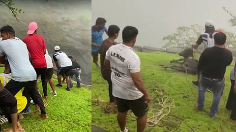 गेल्या दोन दिवसापासून सुरू असलेल्या पावसामुळे मदत कार्यात अडथळा येत होता, पण तरुणांनी अखेर या गाईला वरती सुखरुप काढले.
