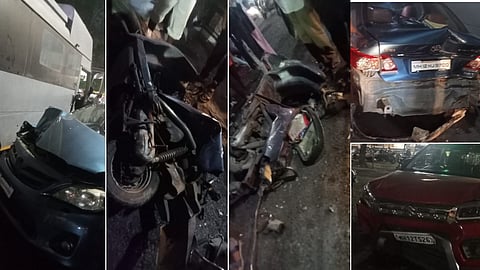 अपघाताचे काही फोटो देखील समोर आले आहेत. फोटोंवरुन अंदाज लावला जाऊ शकतो की ही धडकी किती जोरदार होती. अनेक गाड्याचा अक्षरश: चुराडा झाला आहे. एक रिक्षा उलटली आहे. तर फुटपाथवरील काही दुकानांचंही नुकसान झालं आहे.
