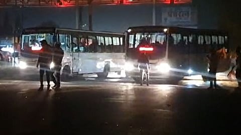 चाकण औद्योगिक क्षेत्रात कामावर निघालेल्या कामगारांच्या बस मराठा क्रांती मोर्चाच्या कार्यकर्त्यांनी अडवल्या आहेत. कामगारांना कामावर न जाण्याचे आवाहन मराठा क्रांती मोर्चाच्या कार्यकर्त्यांनी केले. कामगारांच्या बस पुणे-नाशिक महामार्गावर चांडोली टोलनाक्यावर रोखल्या आहेत. ('साम टीव्ही'चं व्हॉट्सअॅप चॅनल जॉईन करण्यासाठी येथे क्लिक करा)