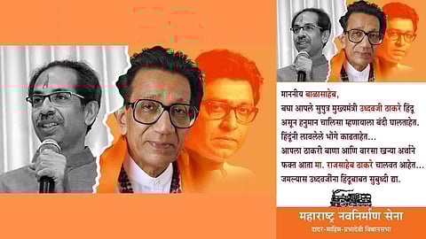"उद्धव ठाकरे हिंदू असून हनुमान चालीसा बोलायला बंदी घालतात, भोंगे काढतात असं म्हणत बाळासाहेब आपला ठाकरी बाणा आणि वारसा खऱ्या अर्थाने राज साहेब ठाकरे (Raj Thackeray) चालवत आहेत, जमल्यास उद्धव ठाकरे यांना सुबुद्धी द्या" अशा आशयाचे पोस्टर्स मनसैनिकांनी सेनाभवनासमोर लावले आहेत.