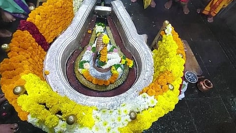 पुणे : आज श्रावणातील शेवटचा श्रावणी सोमवार... बारा ज्योतिर्लिंगांपैकी एक असलेल्या ज्योर्तिलिंग भीमाशंकर या ठिकाणी पहाटेची महाभिषेक, श्रुंगार करत महाआरती करण्यात आली. यावेळी भिमाशंकराचे मंदिर, गाभारा विविध रंगाच्या फुलमाळांनी सजविण्यात आले आहे. आज शेवटच्या सोमवारी महापुजेनंतर भिमाशंकराचे शिवलिंग सजविण्यात आले. यावेळी शिवलिंगाचे रुप आगळेवेगळे पहायला मिळाले आहे.