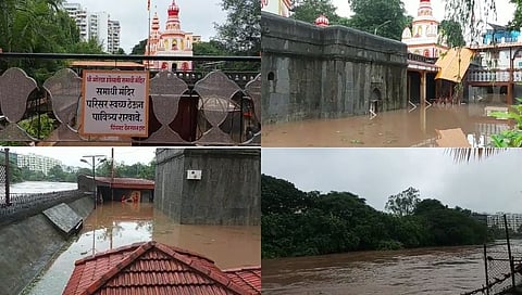 पिंपरी-चिंचवड : पिंपरी-चिंचवड शहराला पाणी पुरवठा करणाऱ्या पवना धरण क्षेत्रात जोरदार पाऊस झाल्याने, मोठ्या प्रमाणात पाण्याचा विसर्ग पवना नदी पात्रात करण्यात येत आहे. त्यामुळे पवना नदी पात्रता पाण्याची पातळी वाढली असून चिंचवडचे ग्रामदैवत असणाऱ्या मोरया गोसावी गणपती मंदिर जलमय झाले आहे.