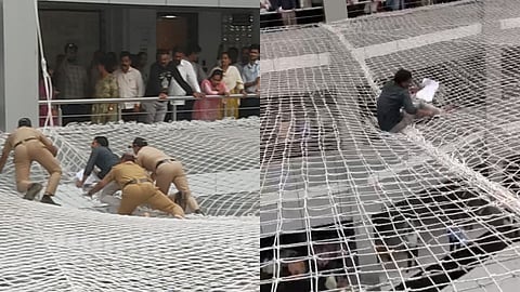 या तरुणाने सुरक्षा जाळीवर उडी मारल्यानंतर मंत्रालयामध्ये एकच गोंधळ उडाला. त्यानंतर मंत्रालयातील पोलीस आणि सुरक्षा कर्मचाऱ्यांनी सुरक्षा जाळीवर उडी मारत या तरुणाला बाहेर काढले. त्यानंतर पोलिसांनी या तरुणाला ताब्यात घेतले.