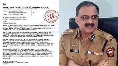 सध्या सोशल मिडिया वापरकर्त्यांना एक फेक मॅसेज येत आहे. या मॅसेजमध्ये तुम्हाला लवकरच अटक होणार, असा आशयाचा मजकूर आहे. मुंबई पोलीस आयुक्तांच्या नावाने ही नोटीस पाठवण्यात येत आहे. अनेकांना ही नोटीस प्राप्त झाल्याची माहिती आहे. तुम्हालाही अशा प्रकारची नोटीस आल्यास त्याला उत्तर देऊ नका, असे आवाहन पोलीस आयुक्तांनी केलं आहे.