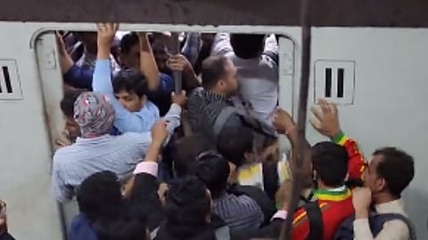 या व्हिडिओमध्ये दिसत आहे की, ट्रेन एका प्लॅटफॉर्मवर उभी आहे. ट्रेन येताच सर्व प्रवाशी तिच्या दिशेने पळू लागतात. यात ट्रेन आतमध्ये तुडूंब भरलेली आहे. मात्र तरी देखील काही व्यक्ती या ट्रेनच्या दरवाजामध्ये लटकले आहेत. आता हे असं दृश्य मुंबईत रोजच पाहायला मिळतं. रेल्वेने प्रवास करताना दरवाजात उभे राहू नका असे सांगणाऱ्या महिलेचा आवाज देखील एवढ्या गर्दीत ऐकू येत नाही.