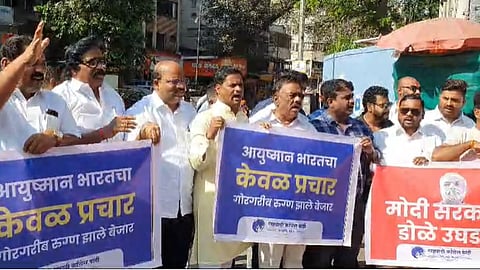 आयुष्मान भारत योजनेंतर्गत देशभरातील आर्थिकदृष्ट्या दुर्बल असणाऱ्या नागरिकांना(PM Ayushman Yojana) मोफत उपचार दिले जात आहेत. आतापर्यंत कोट्यवधी लोकांनी या योजनेचा फायदा घेतलेला आहे. परंतु या योजनेविरोधात पु्ण्यात राष्ट्रवादी काँग्रेस शरद पवार गट आक्रमक (NCP Protest) झाला आहे. पंतप्रधानांच्या आयुष्मान योजनेविरोधात पुण्यात राष्ट्रवादी काँग्रेस शरद पवार गटाने आंदोलन केलं आहे. (Latest Marathi News)