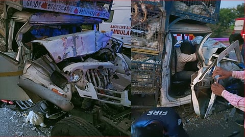 पुण्यावरून मुंबईला कोंबड्यांची (chicken) वाहतूक करणारा पीकअप टेम्पोच्या चालकाने भरधाव जाणाऱ्या कंटेनरला मागून जोरात धडक दिली. त्यामुळे हा अपघात झाला. काही काळ या पुणे मुंबई मार्गिकेवरची वाहतूक ठप्प झाली होती.