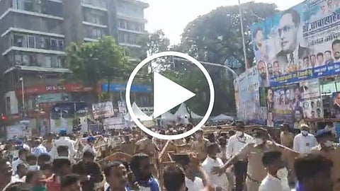 यामुळे काही अनुयायी संतापले. या अनुयायांमध्ये आणि पोलिसांमध्ये चांगलीच झटापटही झाली आहे. ऑल इंडिया पँथरचे कार्यकर्त्यांनी चैत्यभूमीच्या बाहेर गोंधळ घातला आहे. राजकीय नेते थेट येऊन दर्शन घेत आहेत. त्याबरोबरच त्यांचे अनेक कार्यकर्ते देखील त्यापद्धतीत दर्शन घेत होते. panic situation all india panther activists outside chaityabhoomi he pushed police