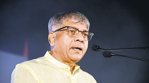 आंबेडकर म्हणाले, 'कंत्राटी व्यवस्थेत जो कर्मचारी आणि अधिकारी राबलेला आहे. सुप्रीम कोर्टाचा निर्णय बघितला तर लक्षात येईल की, त्यांना ५८ व्या वयापर्यंत निवृत्त करायचे नाही असा अजेंडा आमचा ठरत आहे. राज्यात १४ लाख सरकारी कर्मचारी आणि अधिकारी आहेत. या कर्मचारी अधिकाऱ्यांच्या संख्येमध्ये वाढ केली पाहिजे. पाच वर्षात ही संख्या २२ लाखांवर गेली पाहिजे. तेव्हाच शासन व्यवस्थितरित्या चालू शकते'.