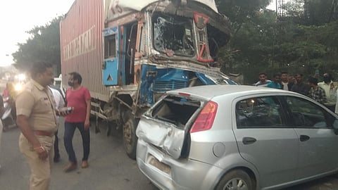 घटनास्थळावरून मिळालेल्या माहितीनुसार, मुंबई बेगळुरू महामार्गावर पुण्यातील भूमकर पुलावर एका ट्रकने एसटी महामंडळाच्या शिवशाही बसला धडक दिली. त्यांनतर एक पिकप, रेनॉल्ट कंपनीच्या एका कारला उजव्या बाजूने जोरदार धडक दिली. त्यानंतर ट्रक चालकाने बाजूने जात असलेल्या एका कारला ट्रकच्या समोरील बाजू धडक दिली आणि या कारला जवळपास दीड किलोमीटर फरपटत नेले. यादरम्यान महामार्गावरची वाहतूक काहीकाळ विस्कळीत झाली होती.