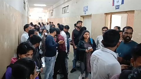 दरम्यान परीक्षा केंद्रावर विद्यार्थ्यांनी घाेषणाबाजी केली. सर्व विद्यार्थी परीक्षा केंद्राच्या बाहेर आले. सध्या परीक्षा केंद्रावर पोलीस बोलावण्यात आले आहेत.