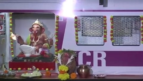 मुंबई: कोरोना संकटामुळं मुंबईतील लोकल सर्वांसाठी अद्याप सुरू झाल्या नाहीत. लशीचे दोन डोस झालेल्या प्रवाशांनाच सध्या प्रवासाची मुभा आहे. अजूनही अनेक लोक मुंबई लोकलने प्रवास करण्याच्या प्रतीक्षेत आहेत. हाच विषय घेऊन मुंबईतील तरूणानं लोकलचा देखावा साकारलाय. याच लोकलमध्ये लाडका बाप्पा विराजमान झालाय. (See this beautiful scene of Ganpati Bappa based on the theme of Mumbai's local train)